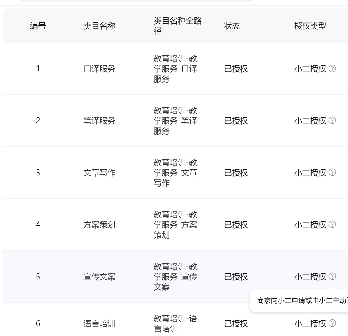 主营类目